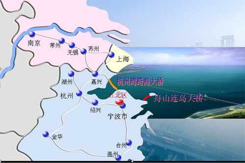 | 【宁波市】 江北区为宁波市三个行政老城区之一。宁波位于中国大海岸线中段,经济发达的长三角南翼,浙江省东部,毗邻上海、杭州,是中国东南沿海重要的港口城市,华东地区重要的工业城市和对外贸易口岸,是长三角区域中心城市和重化工基地,浙江省经济中心。 宁波全市总面积9816平方公里,其中市区面积2462平方公里。宁波是中国文化历史文化名城,7000余年历史的河姆渡文化发祥地;宁波作为中国五个计划单列市之一(副省级城市,具有制动地方法律法规权利,享有省一级经济管理权限),是中国长三角洲南翼经济中心和东南沿海重要港口城市,被联合国评估为中国最具发展前途城市。 宁波享有:全国历史文化名城、优秀旅游城市、环保模范城市、国家园林城市、国家卫生城市、中国品牌之都、中国文具之都、中国模具之都等荣誉称号。 宁波城市对外交通又公路、铁路、航空、海港和内河航运构成。 目前宁波火车至上海和温州3小时,至杭州2小时,至金华4小时。宁波机场到市中心约有半小时的车程。 经杭州湾大桥和舟山连岛大桥,宁波至上海的车程为2小时,到舟山仅1小时。得益于高效的交通网络,宁波与长三角域内各个重点城市的联系更加紧密。  宁波优越的地理位置(点击放大)